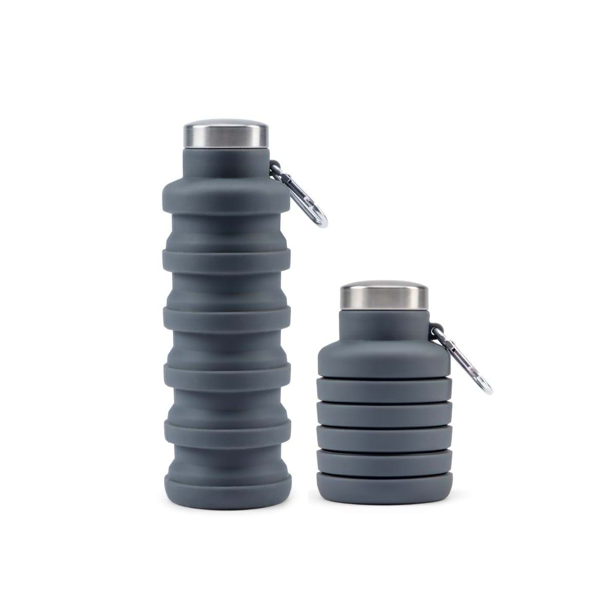 Flaska i silikon som du lätt kan tryck ihop och dra isär för att göra större eller mindre. En perfekt outdoorprodukt för att minimera packningen. I toppen finns en karbinhake för att hänga på exempelvis ryggsäcken.