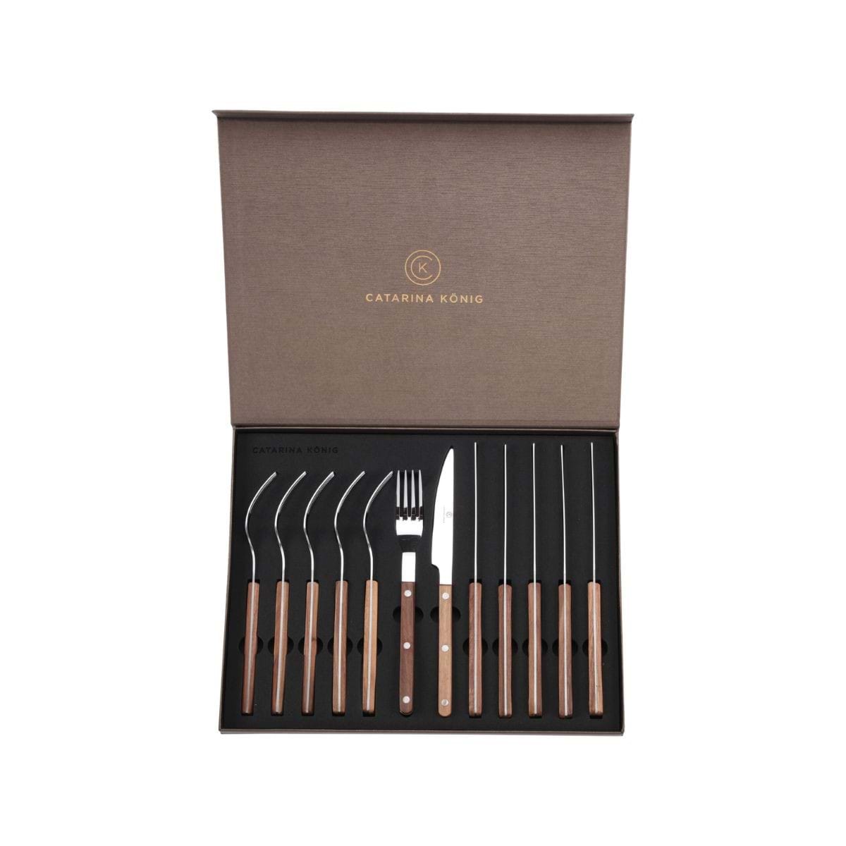 Ett stilrent klassiskt grillbestickset med rostfritt stål och handtag i valnötsträ. Det kommer i 12-delar och besticken kombinerar funktion med design som ger en varm och exklusiv känsla till varje måltid.