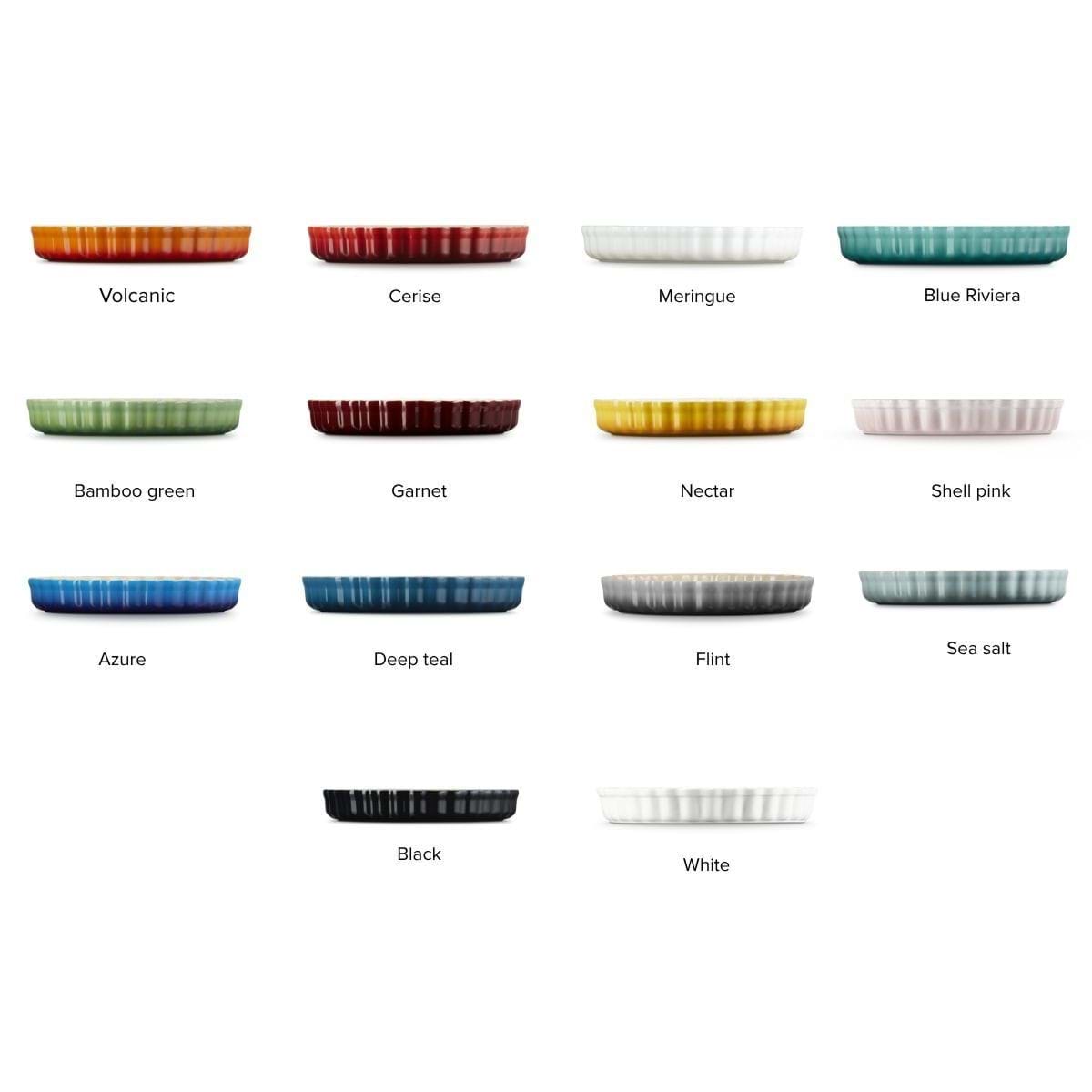 Pajform i stengods från Le Creuset. Perfekt för tillagning och servering av exempelvis grönsaks- eller fruktpajer. Stengodsets invändiga glasyr är lätt att diska och gör att pajformen inte absorberar smak, fukt, lukt och färg från livsmedel. Pajformen kan användas i temperaturer från -18° till +260° C och tål frys, mikrovågsugn, ugn, placering under ugnens grillelement, samt att diskas i diskmaskin.