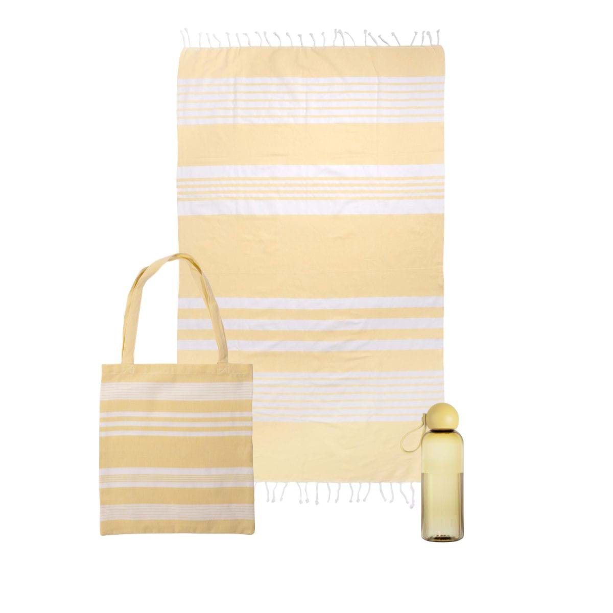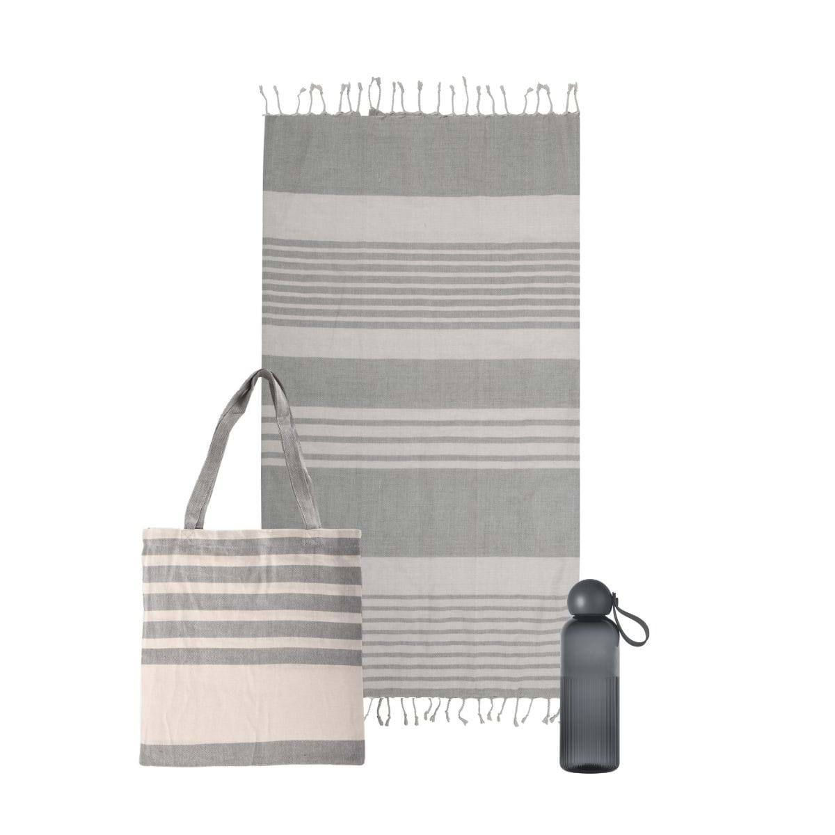 Ett somrigt set för lata dagar vid havet. Innehåller vattenflaskan Ture tillsammans med Ella Hamam handduk och matchande hamamkasse – perfekt för stranden, utflykter och varma sommardagar.