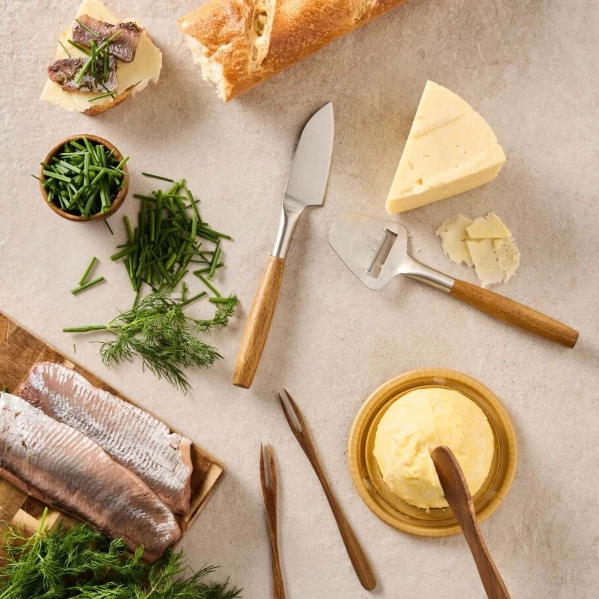 Ett fint set för alla våra högtider, eller bara en enkel middagsbjudning. S.O.S- setet består av en smörkniv, en osthyvel, en ostkniv samt två sillgafflar.