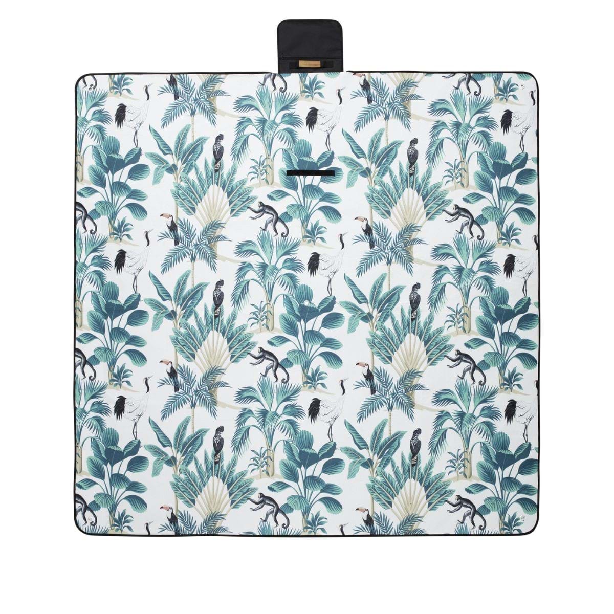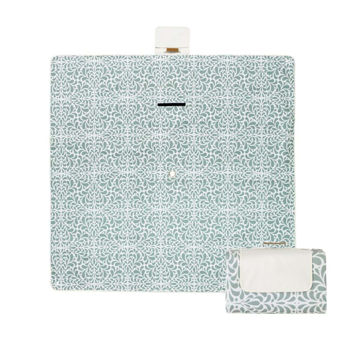 En generös picknickpläd i R-PET med plats för hela sällskapet. Pläden har en mjuk och slitstark yta som dessutom är lätt att rengöra. Smidig att rulla ihop och ta med på sommarens alla utflykter eller kvällar vid havet. Den har fyra hål i hörnen som gör den lätt att fästa i underlaget. Den har även ett hål i mitten för att kunna fästa ett parasoll.