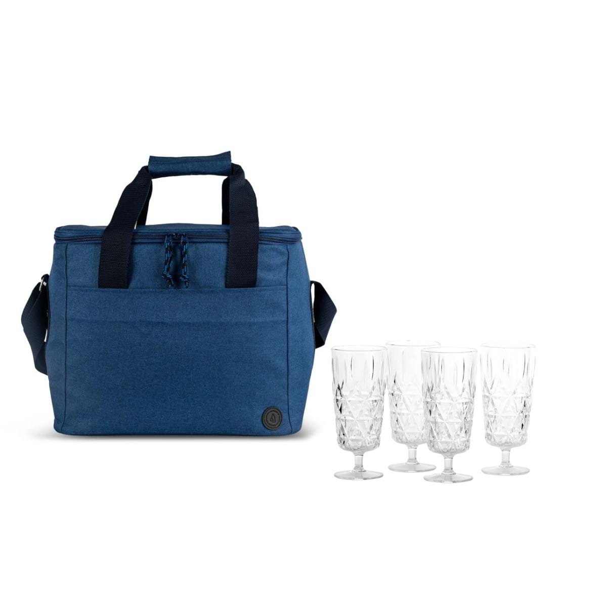 Perfekt för picknick, båt- eller pooldag i sommar. Kitet innehåller den rymliga City-kylväskan samt ett 4-pack Juni höga glas i akrylplast.