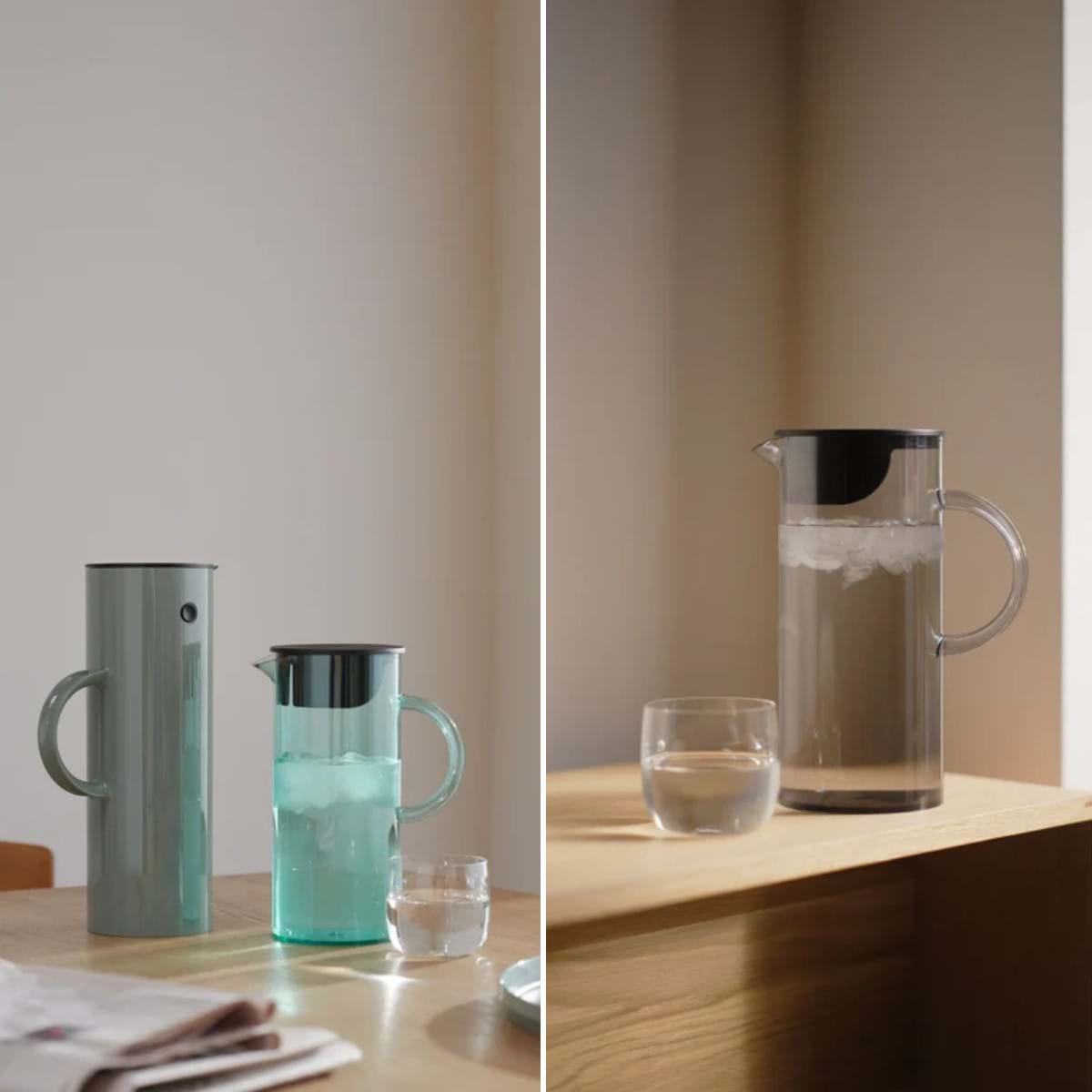 EM77 kanna med lock 1,5 L från Stelton är tillverkad i hållbar SAN-plast och ABS. Denna kanna har ett distinkt formspråk och rymmer 1,5 liter. Den har ett praktiskt lock som behåller iskuber inuti vid upphällning och kan förvaras i kylskåpet för senare användning vid middagsbordet.