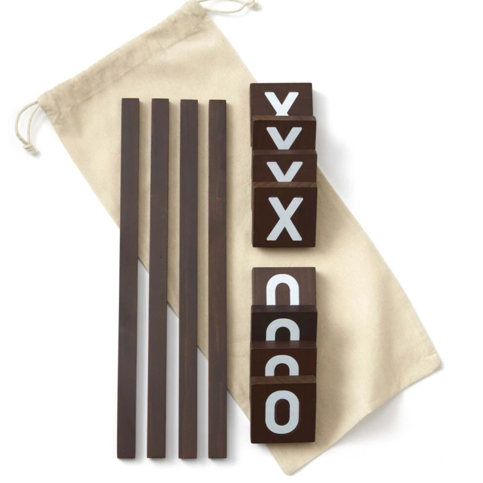 Tidlöst spel som är perfekt för picknicken, en dag på stranden eller varför inte hemma. Spelet består av fyra stavar som du lägger ut som ett rutmönster, samt totalt åtta brickor med X eller O.