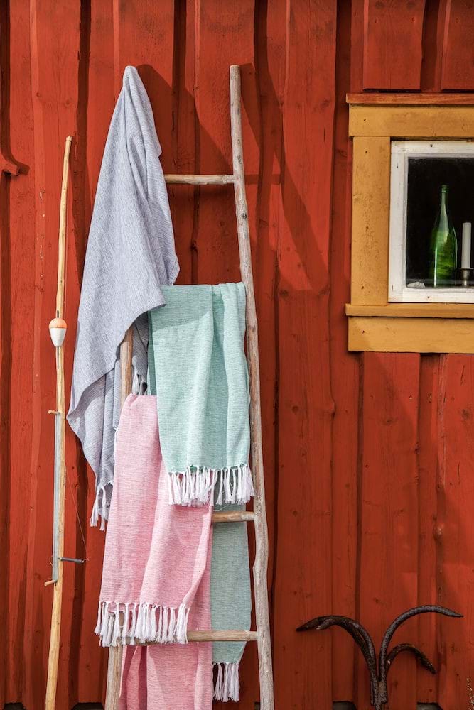 Skön hamamhandduk tillverkad av 70% återvunnen bomull där de färgade trådarna är blandade med vita för att ge ett melerad intryck. En hamamhandduk är lätt, tar liten plats i resväskan, torkar snabbt och sanden fastnar inte. Lika snygg att använda som duk på bordet, som sarong eller en sval filt runt axlarna.