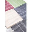 Hamamhandduk med smala vita ränder med en basfärg som ger handduken en känsla av lugn och harmoni. Handduken har fransar på kortsidorna, 100% bomull och kommer i fem färgställningar.